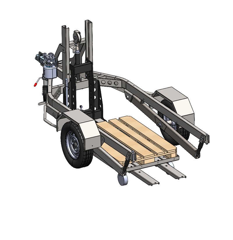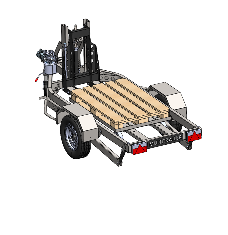 Conçue pour offrir simplicité et efficacité, cette remorque intègre un système de levage permettant un chargement et un déchargement d'une palette chargée sans effort et seul.